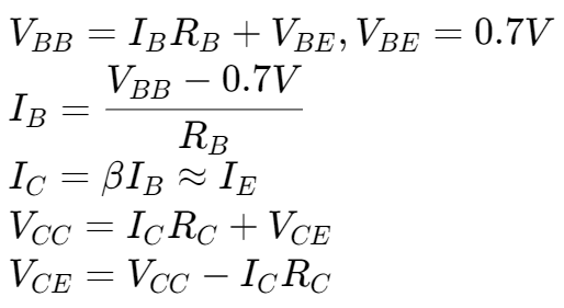 使用一个电阻 RB 连接在基极和电源 VCC 之间,基极电流由 RB 控制。
