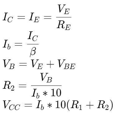 基极通过分压电阻网络 R1 和 R2 偏置,提供稳定的基极电压。