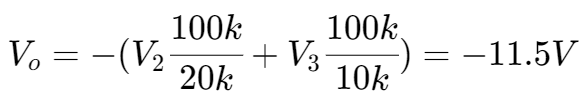 右侧放大器电路为 Summation amplifier,其输出电压: