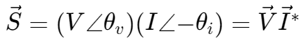 S 的复数表达是由两个复数乘积而来,其中一个是电压,另一个是电流的共轭。
