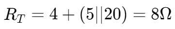 去除电路中所有的电流源和电压源后,等效电阻 RT 就等于两端之间的电阻。