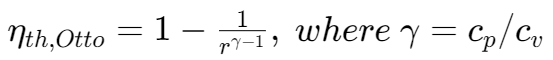 An ideal Otto cycle has a compression ratio of 8. At the beginning of the compression process, air is at 100 kPa and 17°C, and 800 kJ/kg of heat is transferred to air during the constant-volume heat-addition process. Use cold-air-standard assumptions, determine: