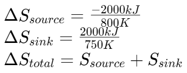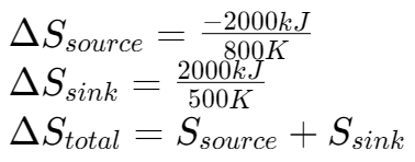 同时对 heat source 和 sink 做熵变的计算,再相加为总的熵变。