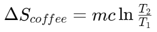 0.5 kg of coffee initially at 90℃, cools off to room temperature 20℃.