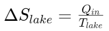 对于湖,计算其熵变需要先计算其吸收的热能: