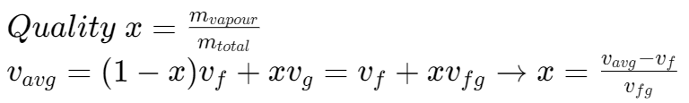 Define quality x as the ratio of the mass of vapour to the total mass of the mixture.